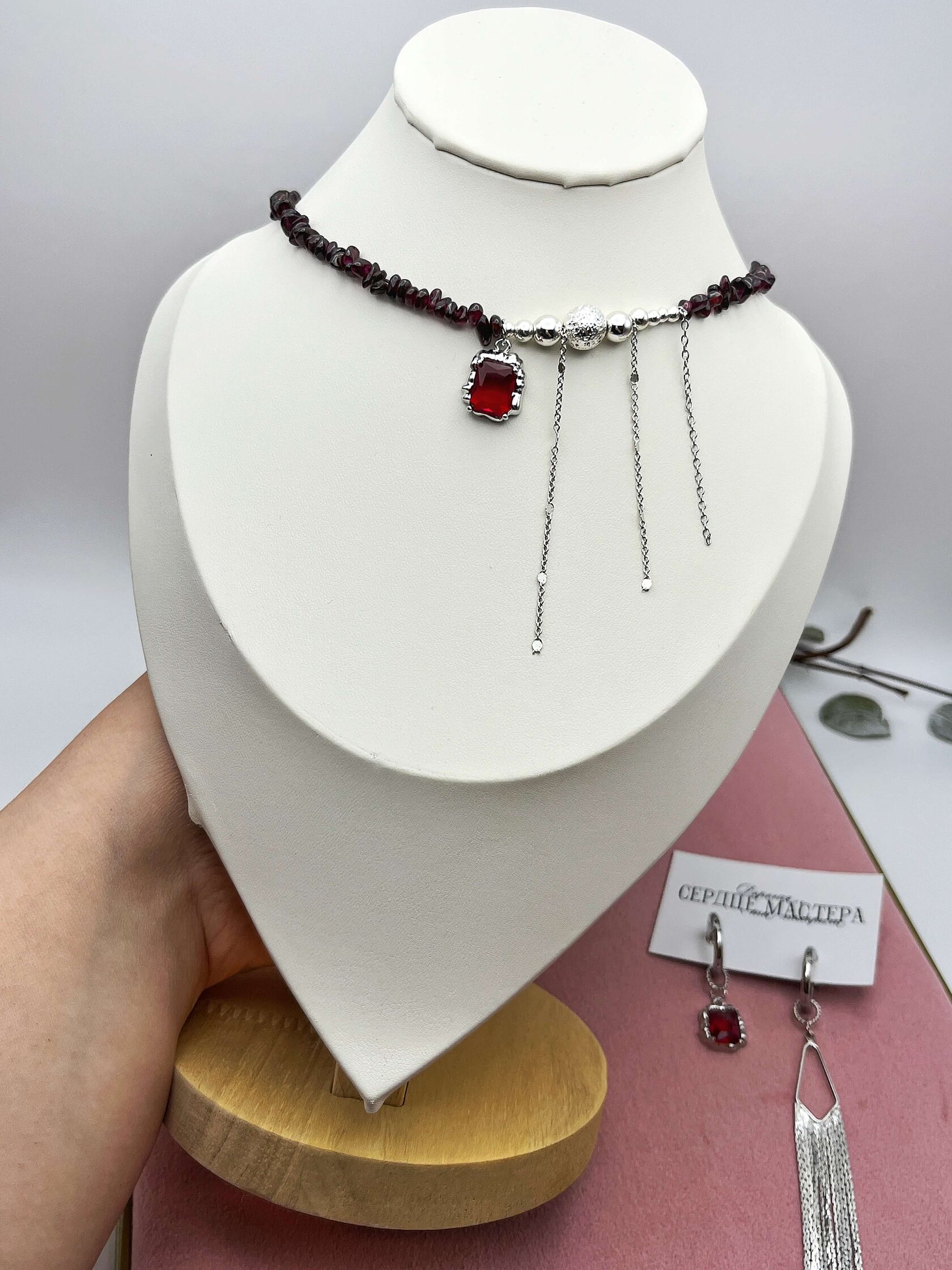 Изящное украшение из граната, гематита и лавы - настоящее отражение любви к себе. Оно пылает страстью и характером скорпиона. Это украшение для сильных духом, тех, кто не боится перемен и черпает свою силу из самых недр. Оно помогает превратить внутренний огонь в реальные свершения.