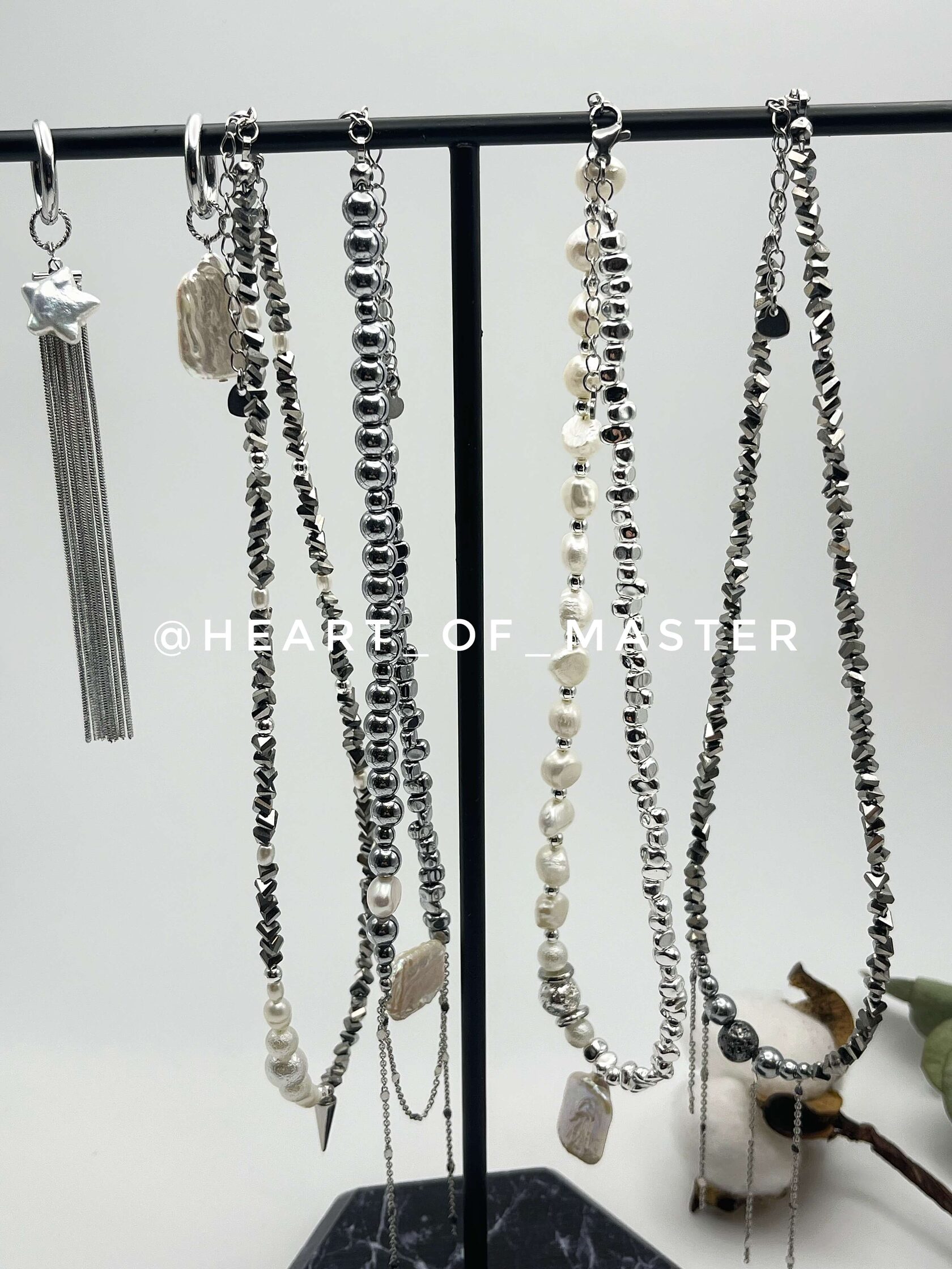 Гематит - твёрдая почва под ногами. Жемчуг - это слои самоценности, которые ты наращивала годами. Каждое зерно - пройденный урок, принятая часть себя, слеза, превращённая в сияние. Он говорит: твоя целостность - результат времени и заботы.